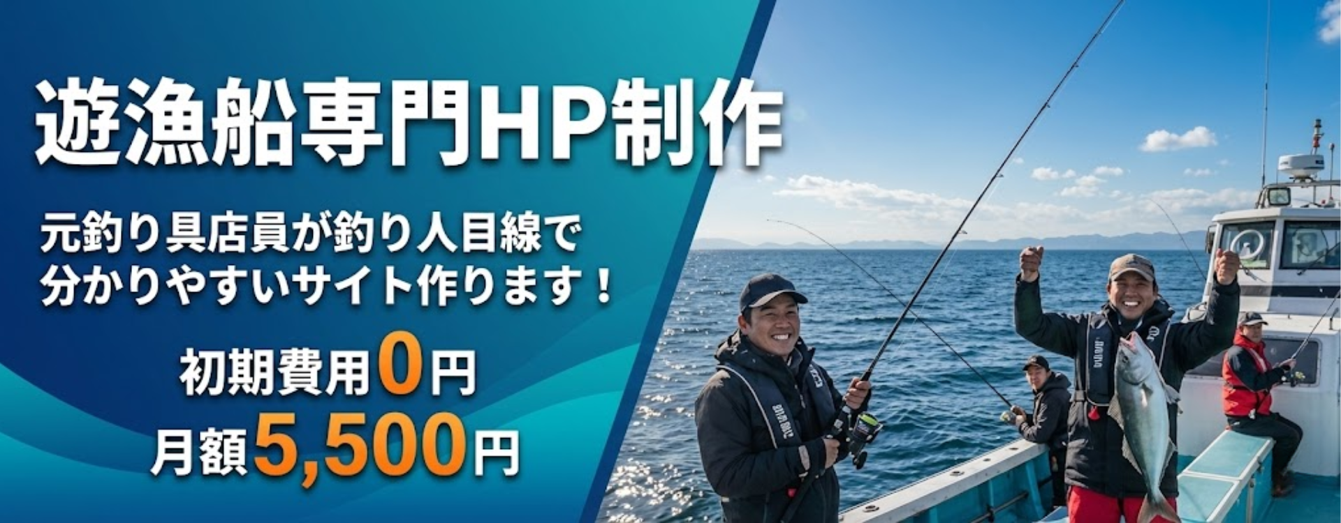 遊漁船の集客に欠かせない、以下のコンテンツをすべて網羅して作成いたします。